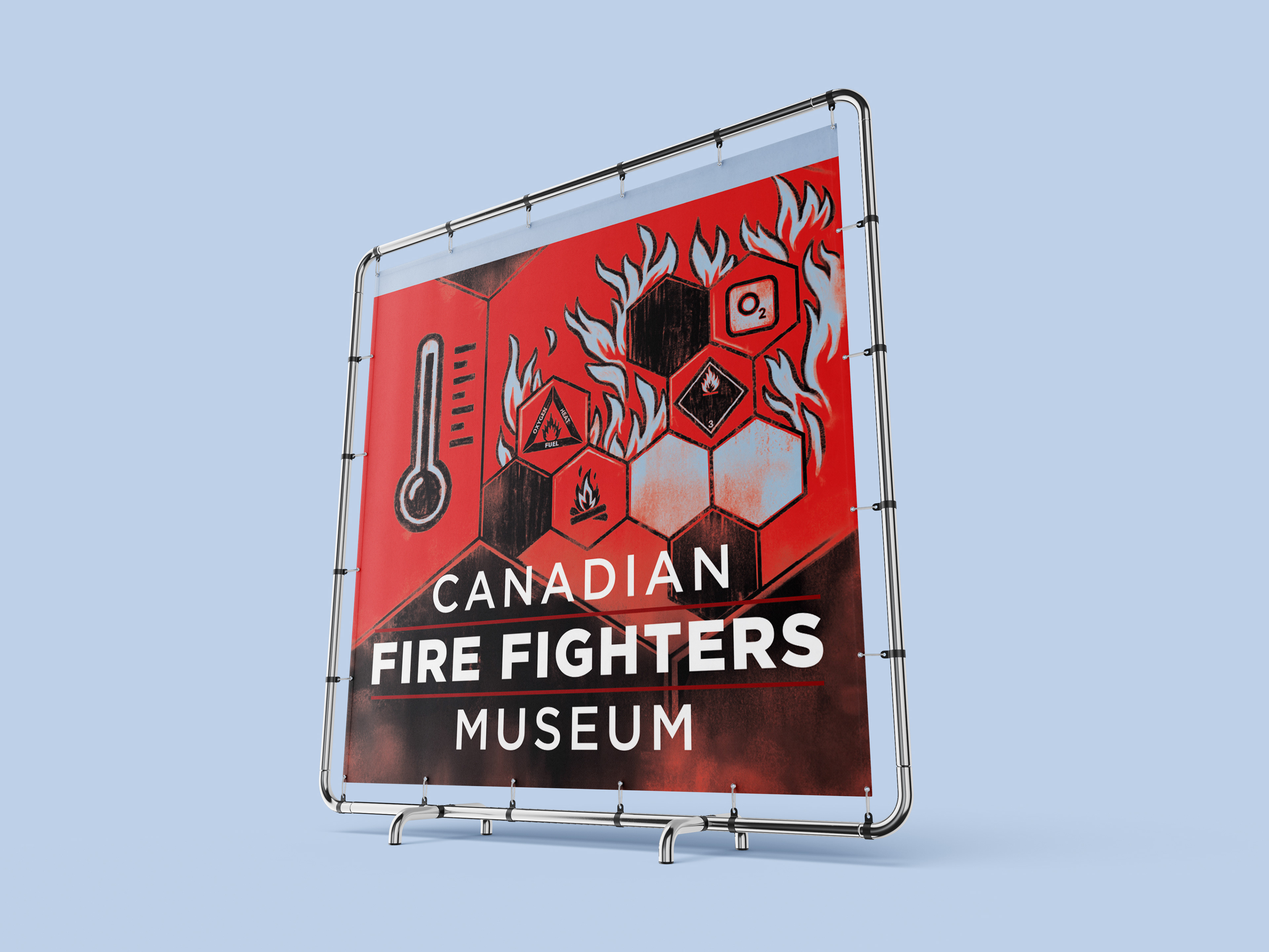 Results: The final posters successfully established a cohesive internal sub-branding system. The five distinct, engaging visual markers, featuring an authentic charcoal aesthetic, enhanced the educational experience and effectively guided visitors through the museum's comprehensive exhibition on Canadian firefighting.