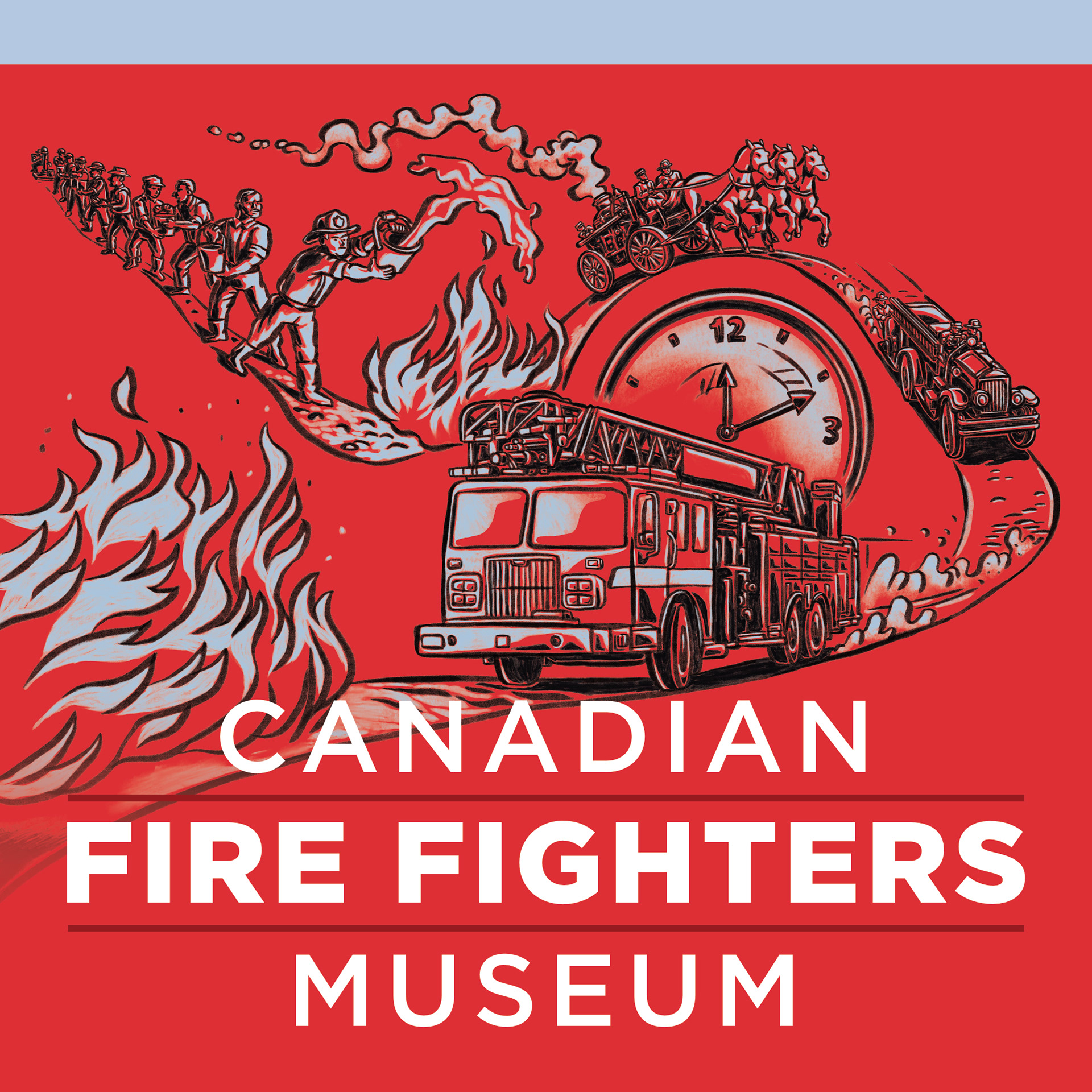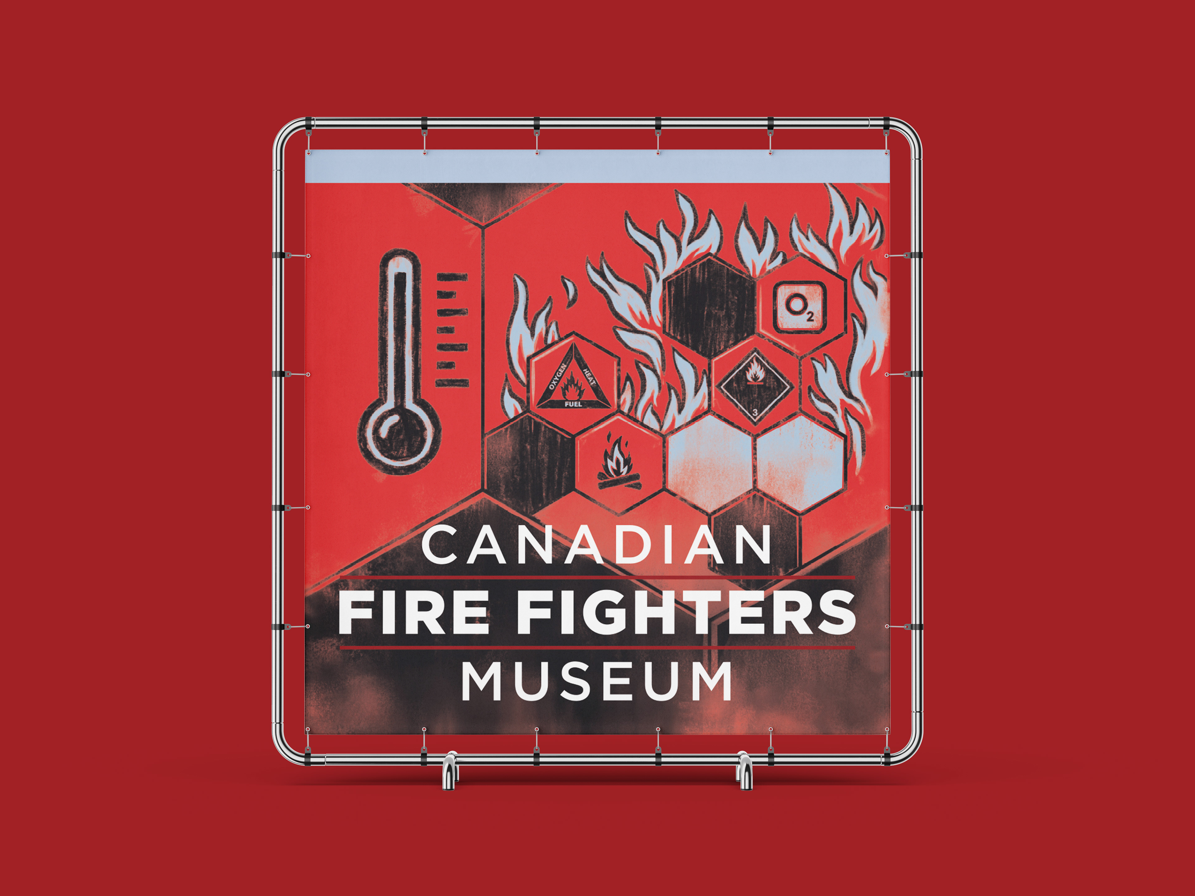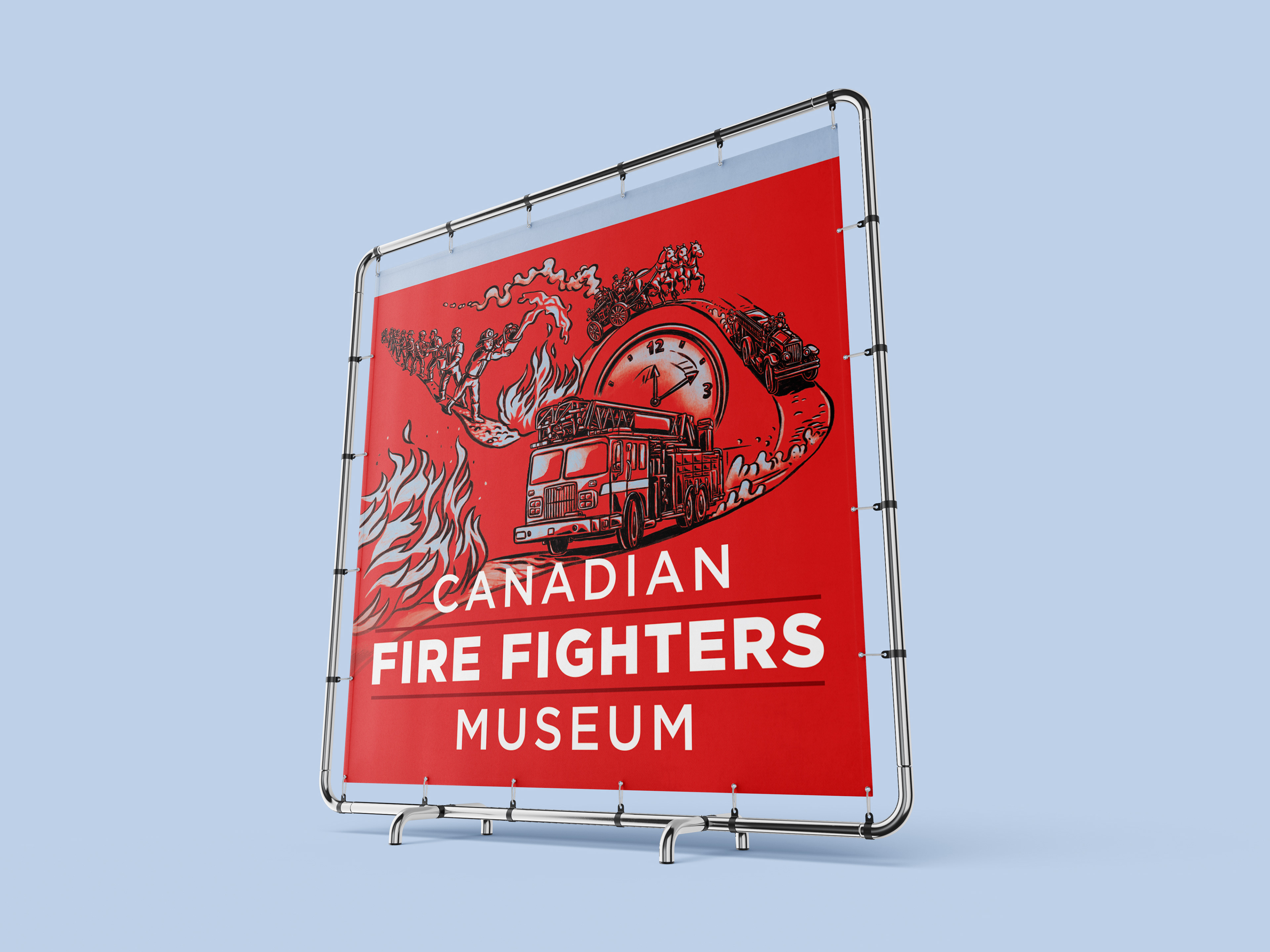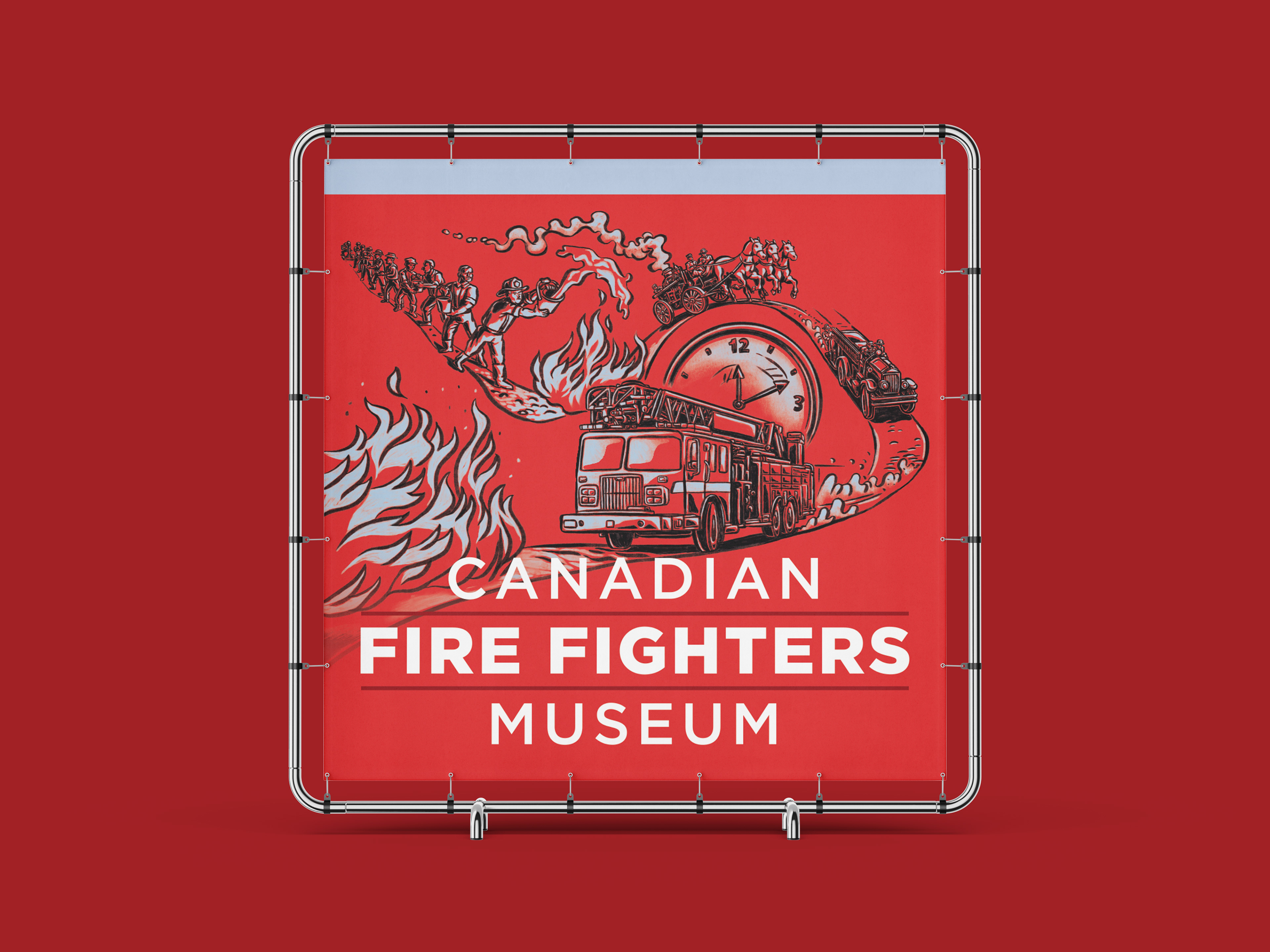 Brief: The Canadian Fire Fighters Museum needed internal signage and sub-branding for a new exhibition. The project required five distinct illustrations to visually represent categories covering the history, science, and culture of firefighting, while integrating the museum's new brand palette.