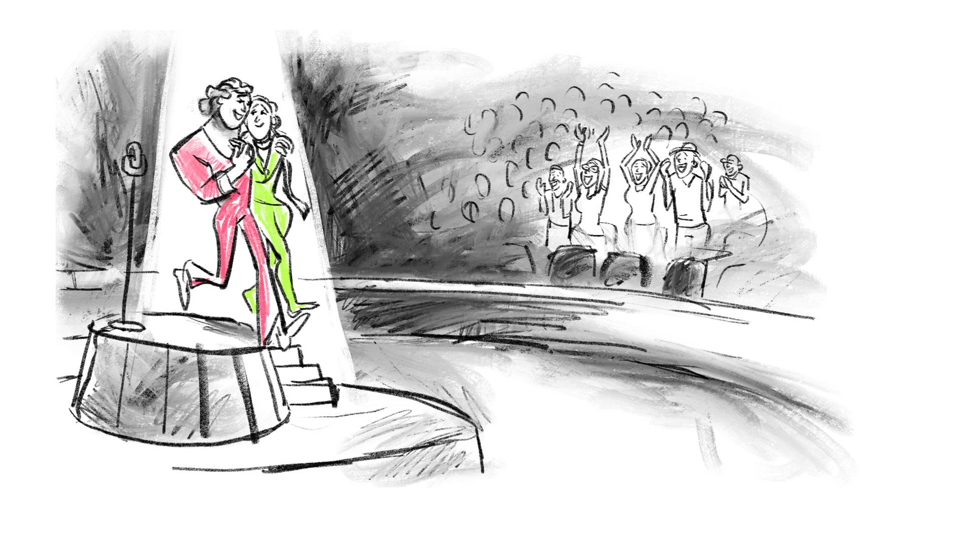 I designed and produced a collection of digitally painted and fully animated scenic backdrops, tailored to each scene of the musical. Some environments featured subtle movement and atmospheric effects, while others were fully animated to heighten dramatic moments and musical transitions. The visuals were crafted to complement the young performers on stage and help smooth scene changes without relying on physical sets. I worked closely with the director to ensure visual timing and mood supported the emotional arc of the show.