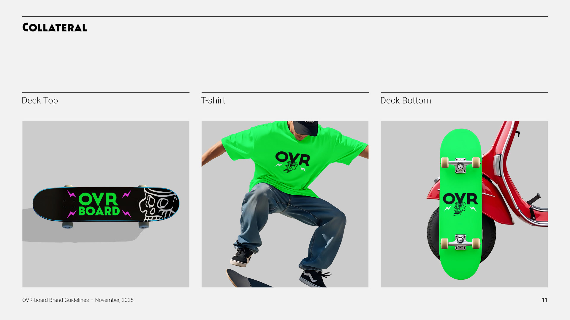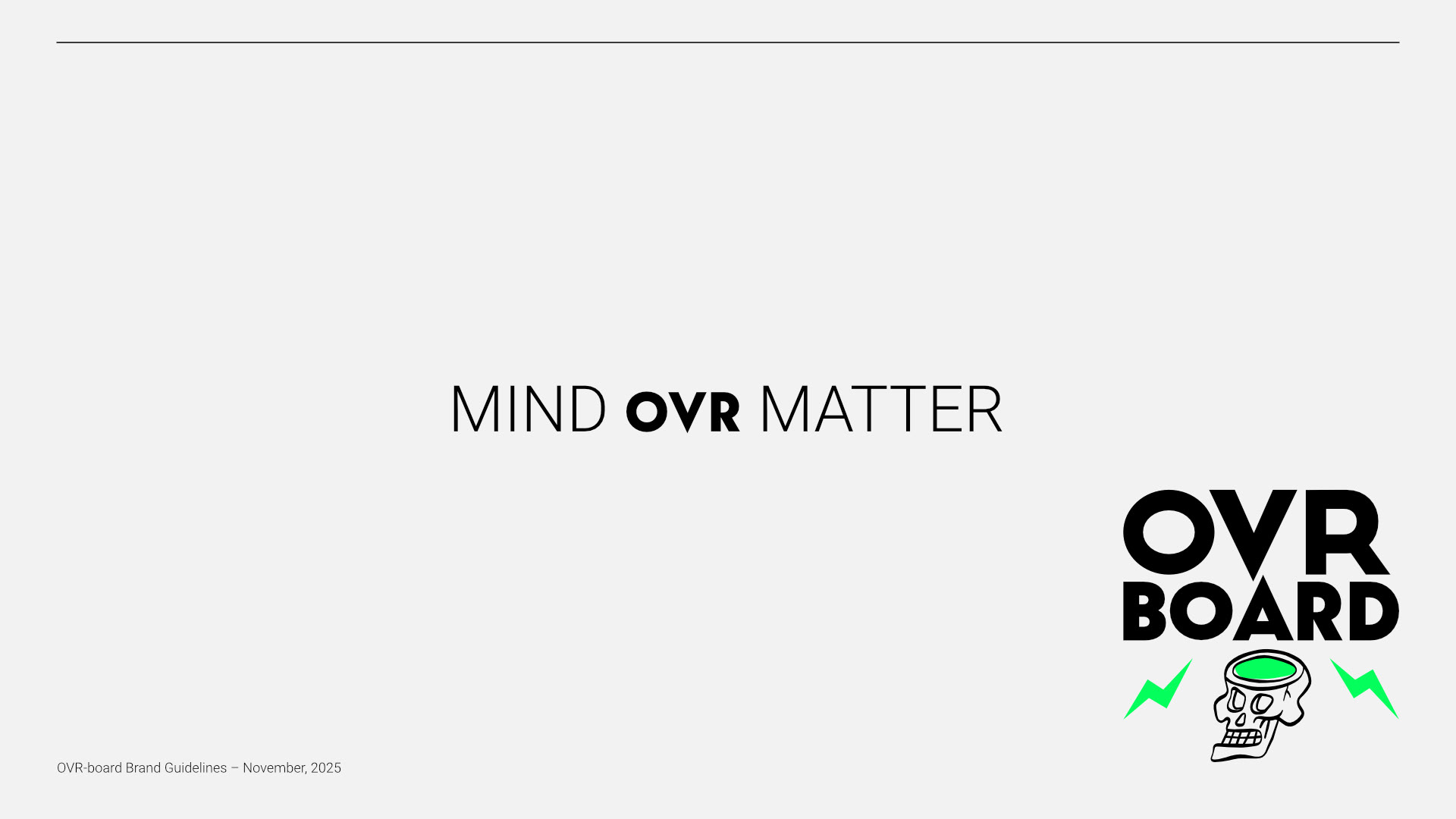 The core idea, “Go OVR — Mind OVR Matter,” reframes performance as both physical and mental. I designed the brand strategy to balance precision and rebellion: clean, minimal design paired with bold intent. OVR-BOARD treats boards like gear—tools built for momentum, craftsmanship, and personal expression—speaking to riders who value design as much as performance.