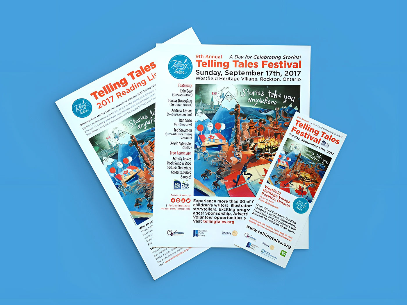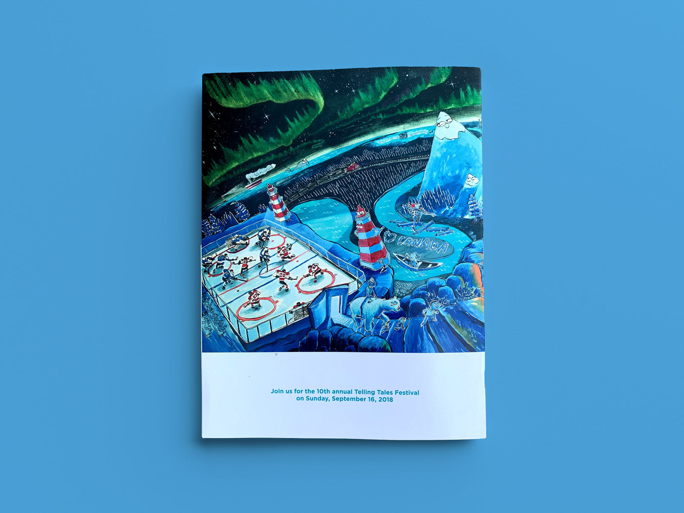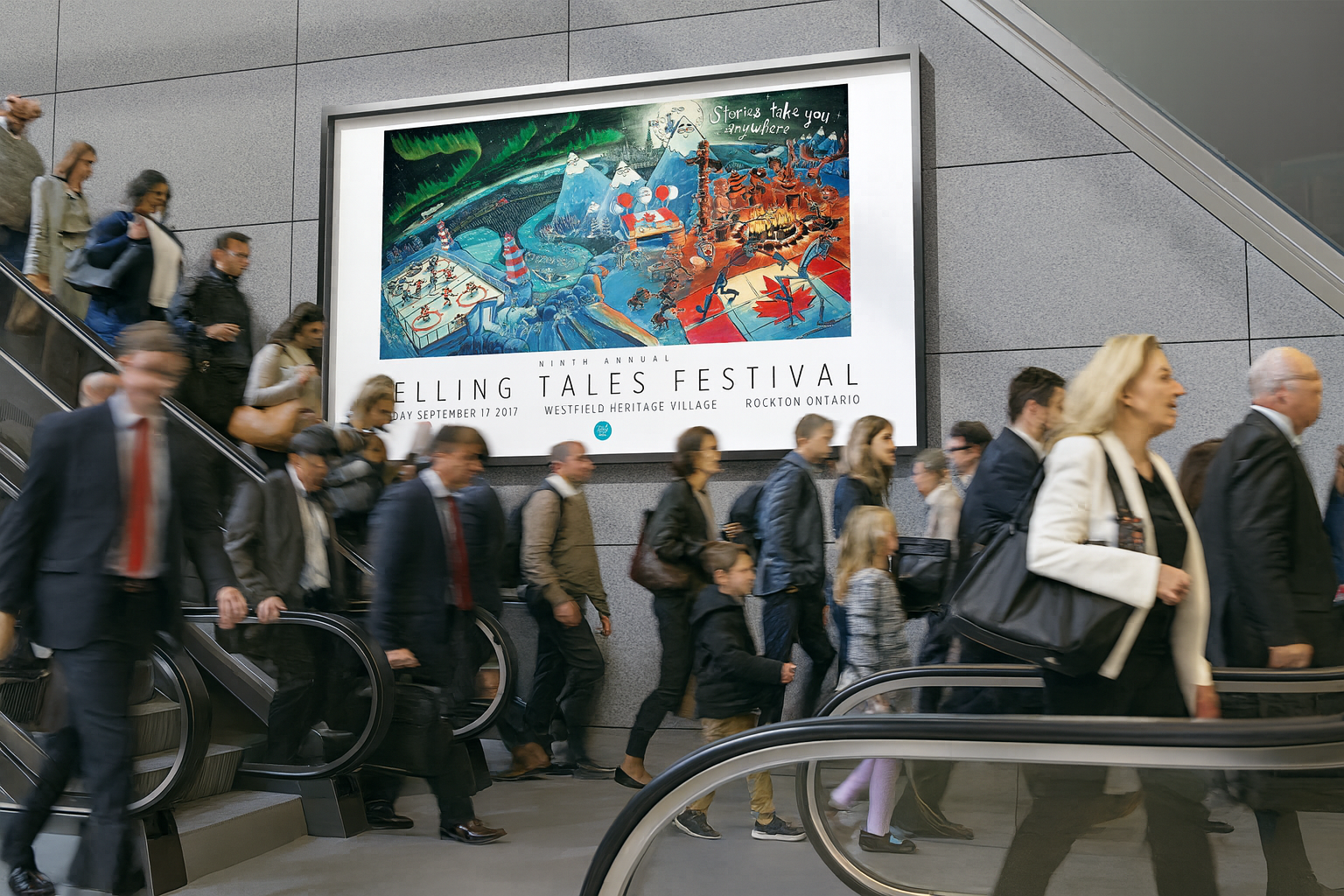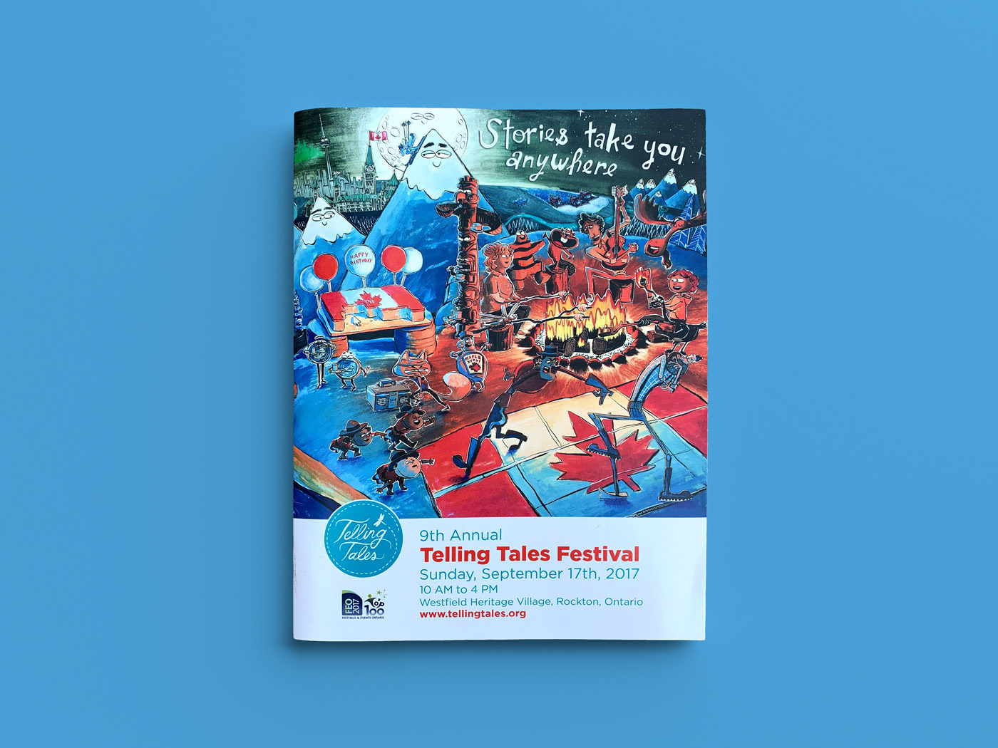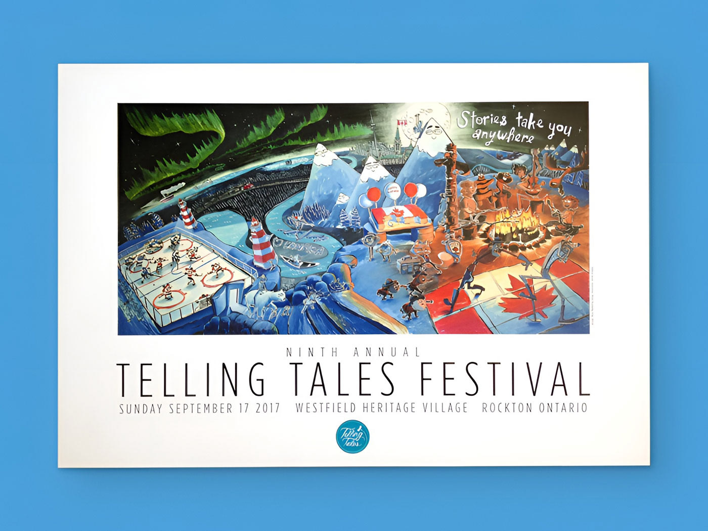 Telling Tales partnered with Muse Marketing to create a mural-style poster celebrating the theme “Stories Take You Anywhere.” The goal was to reflect the magic of storytelling while honouring Canada’s 150th anniversary and boosting festival visibility.